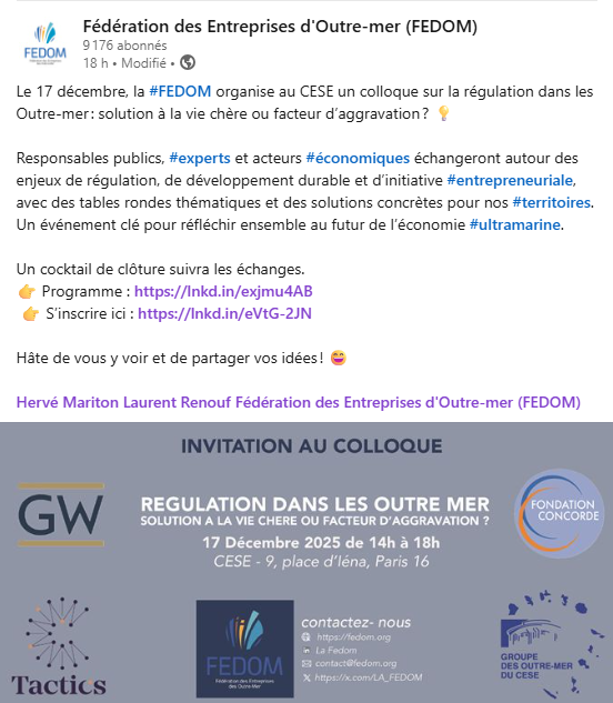 LinkedIn : Fédération des Entreprises d’Outre-mer (FEDOM)